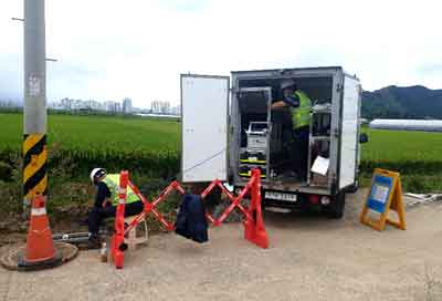 안전봉을 설치하는 등 안전조치를 한 후 초음파 조사 대상 하수관 맨홀을 개방한다.