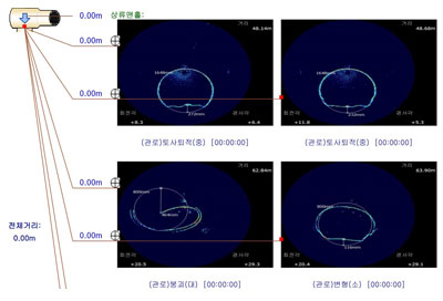 이상 항목(관 변형) : 조사 시점 66.64m지점에서 관 상부와 좌측, 우측 등 전방위에 걸쳐 변형이 발생했다.