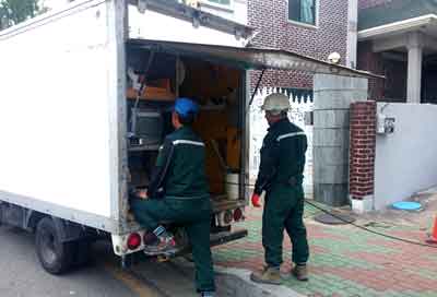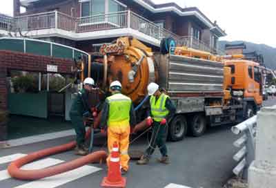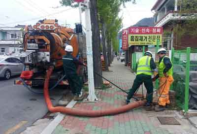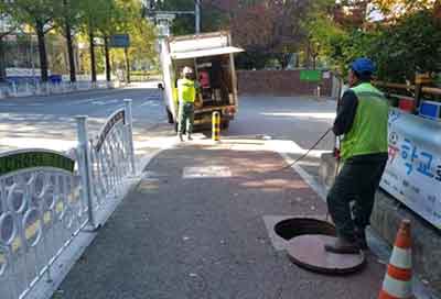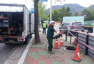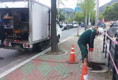 2. 준설차를 이용하여 조사대상 하수관을 세척, 세정한다